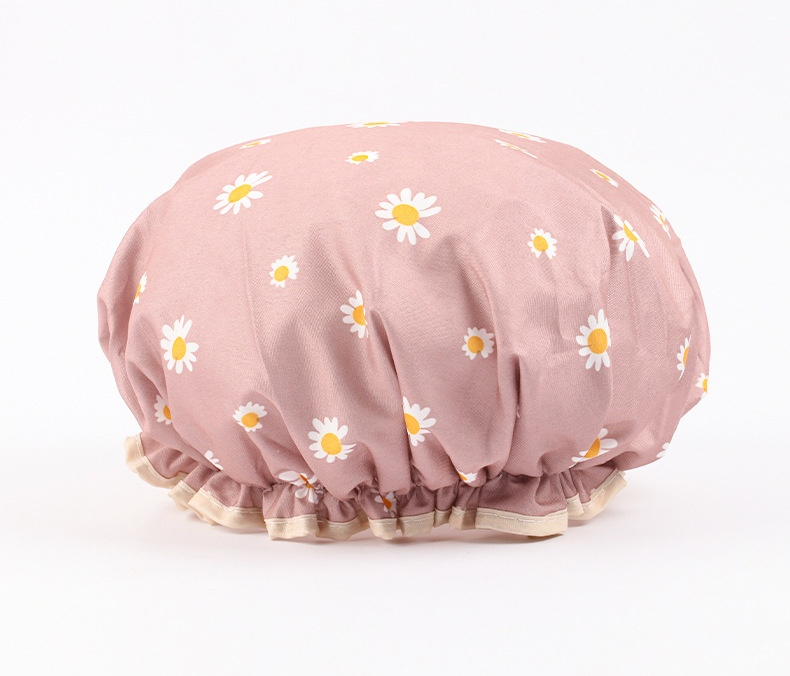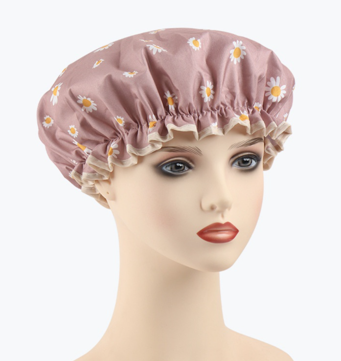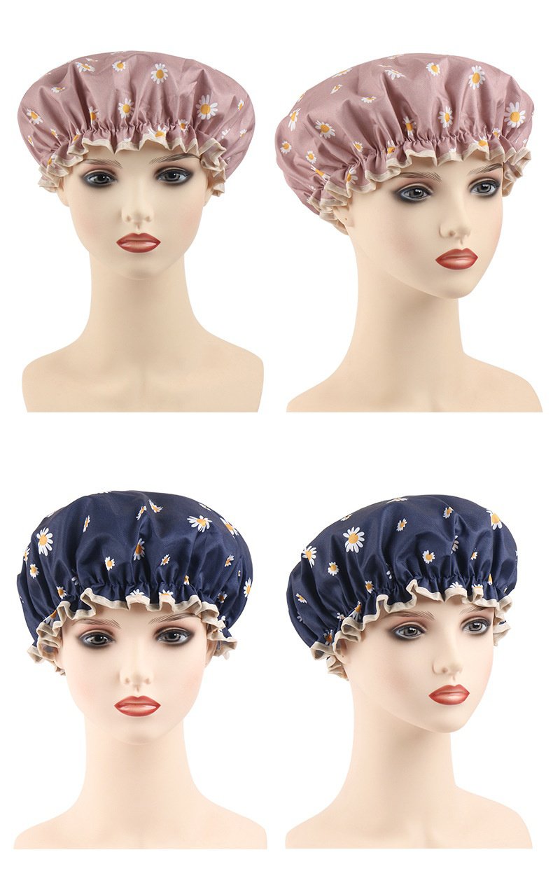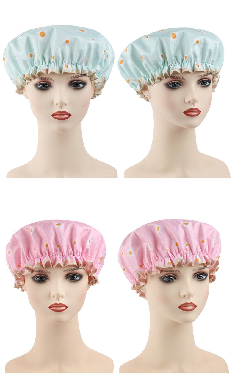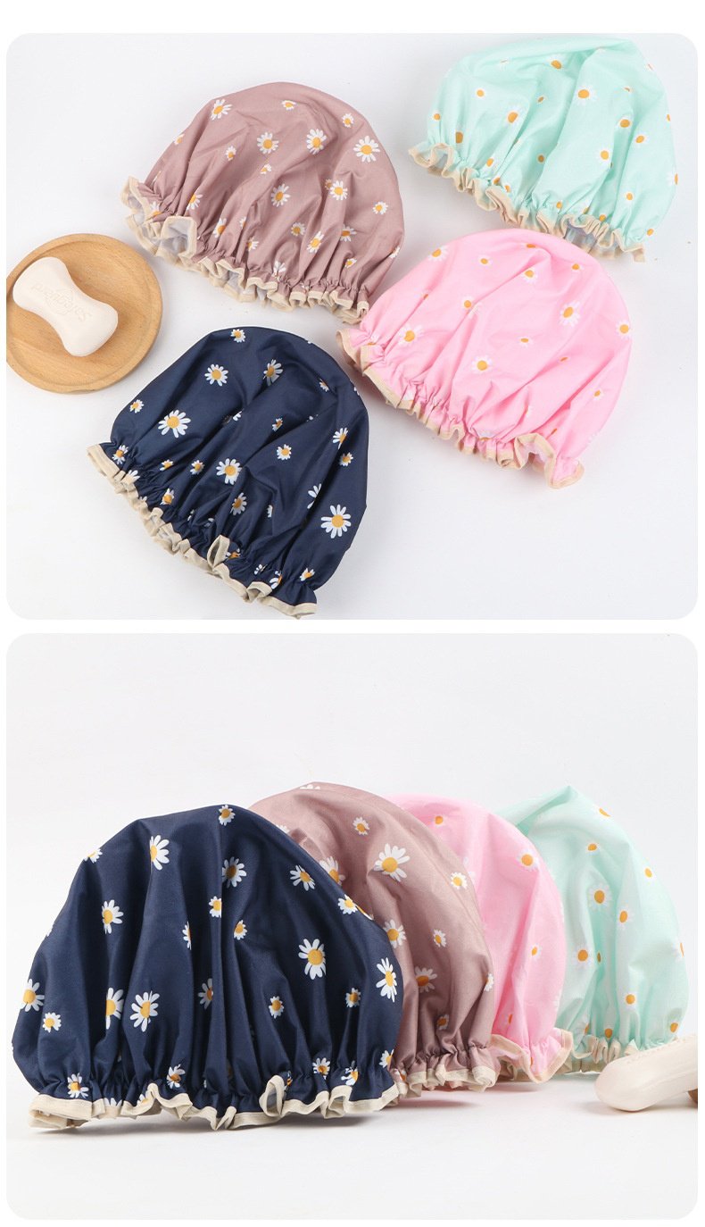 غطاء شعر مقاوم للماء بطبقتين مزدوجتين، تصميم غيوم وزهور، يمنع تسرب المياه ويحمي الشعر أثناء الاستحمام، مناسب للاستخدام المنزلي، متين وسهل التنظيف.
