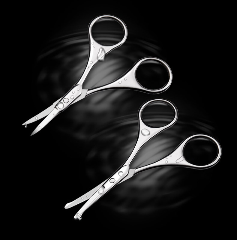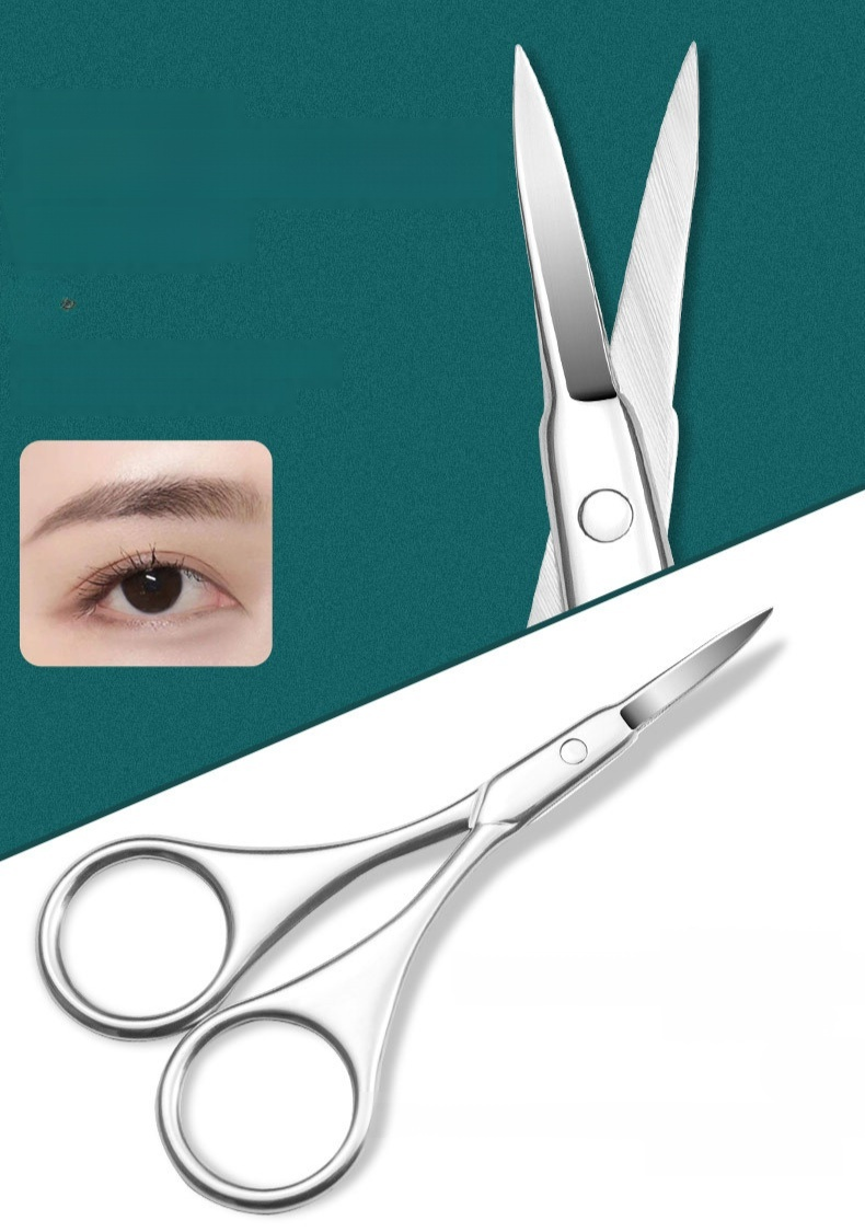 مقص الحواجب متعدد الوظائف من الفولاذ المقاوم للصدأ، دقة في التشذيب، مقاوم للصدأ، سهل الاستخدام والتنظيف، مناسب للحواجب والشعر الزائد، تصميم مريح.